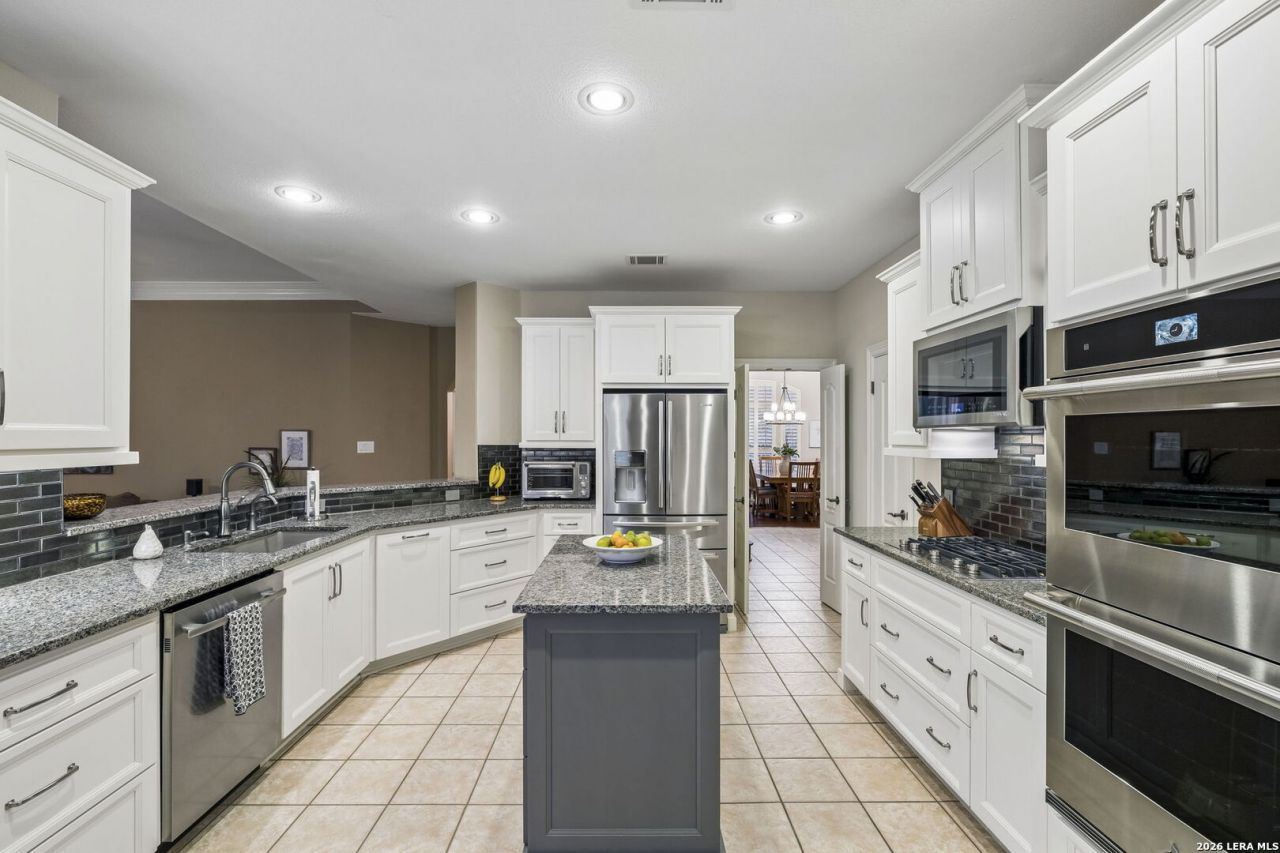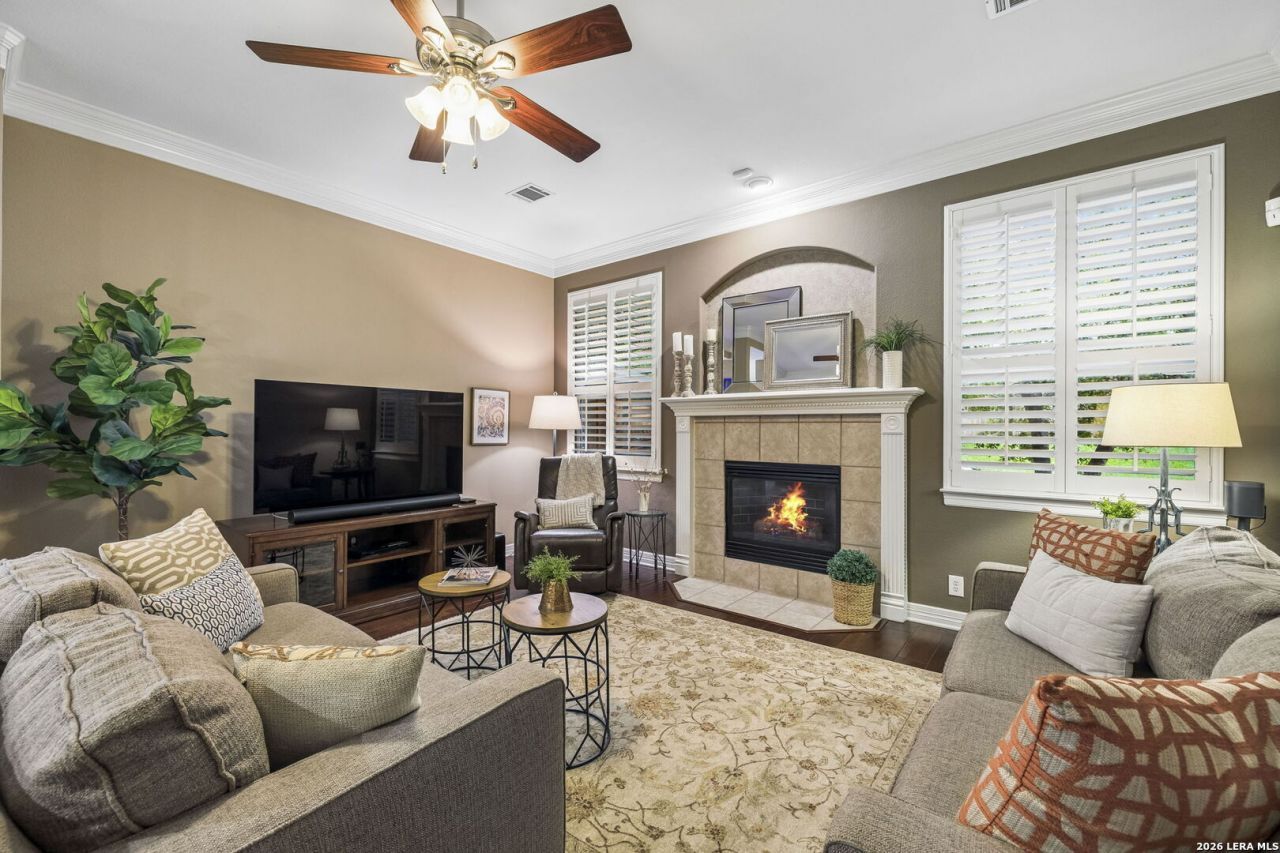OPEN HOUSE 4/25 1-4PM. Sought-after Rogers Ranch Crosstimber in top-rated NEISD! Ideally located with easy access to Hwy 281 & I-10, premier shopping, dining, and entertainment, plus direct access/convenience to the Salado Greenway trail system and resort-style HOA amenities including pool, basketball, tennis, clubhouse, and park spaces. This beautifully updated and meticulously maintained home radiates warmth, comfort, and pride of ownership from the moment you arrive. Stunning brick and stone curb appeal, lush landscaping, and mature trees create an inviting first impression. Inside, enjoy soaring ceilings, rich wood and tile floors, plantation shutters, crown molding, and abundant natural light. The open-concept floorplan is ideal for comfortable everyday living and entertaining. The fully renovated kitchen features updated cabinetry, granite counters, center island, stainless steel appliances, gas cooking, designer backsplash, coffee/wine bar, and two pantries. The welcoming family room with gas-log fireplace offers the perfect gathering space. Spacious main-level primary suite with spa-style bath includes double vanities, jetted tub, separate shower, and walk-in closet with organization system. Flexible secondary bedroom + full bath downstairs is perfect for guests or home office use. Upstairs offers an oversized game room with built-ins and desk area, plus 3 additional bedrooms and 2 full baths. Enjoy outdoor living on the oversized patio, surrounded by mature trees, lush lawn, and privacy fencing. Exceptional storage with walk-in attic and oversized garage space. Updated, welcoming, and move-in ready in one of San Antonios most desirable communities-this is a must-see.